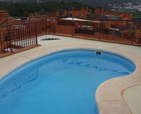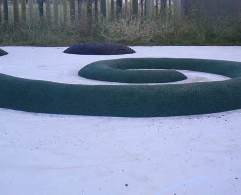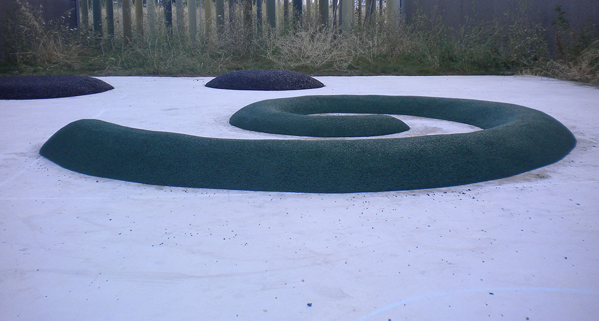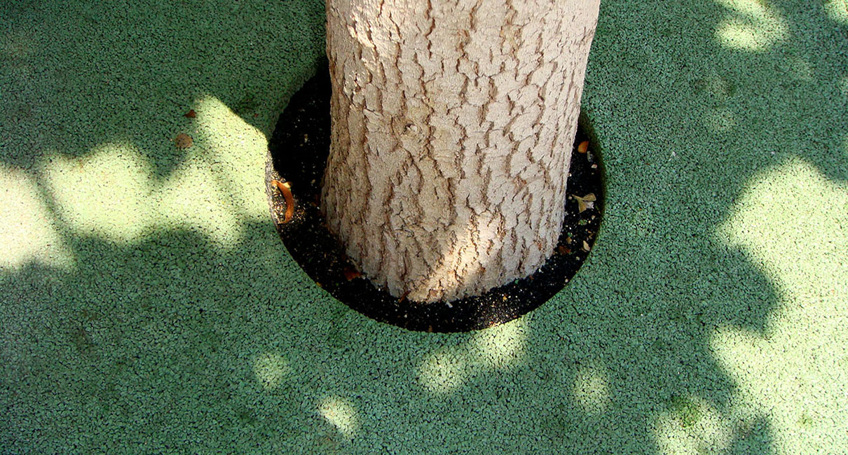 - Los suelos de caucho continuo «in situ» se pueden instalar por ejemplo en pistas de tenis y atletismo, exteriores de piscinas, alcorques de árboles, para formar figuras de diferentes relieves y tamaños, etc, con propiedades amortiguantes, antideslizantes y drenantes.